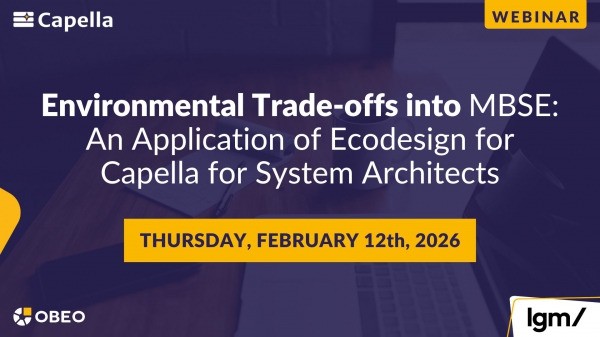 This webinar shows how environmental analysis can be brought into the MBSE workflow using the Ecodesign for Capella add-on. Traditionally, life cycle and environmental trade-off assessments are done outside system models and too late to influence architecture. The session explains how architects can use Capella with built-in environmental criteria and trade-off features to assess impacts within their usual modeling environment. A practical use case on a drone inspection product line illustrates the approach, its benefits, and lessons learned.