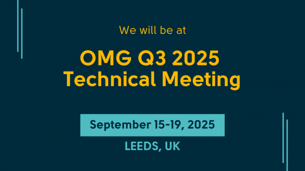We’re looking forward to participating for the Object Management Group’s Q3 2025 Technical Meeting, taking place from September 15 to 19, 2025, at the Nexus Building, University of Leeds (Discovery Way, Leeds, UK).