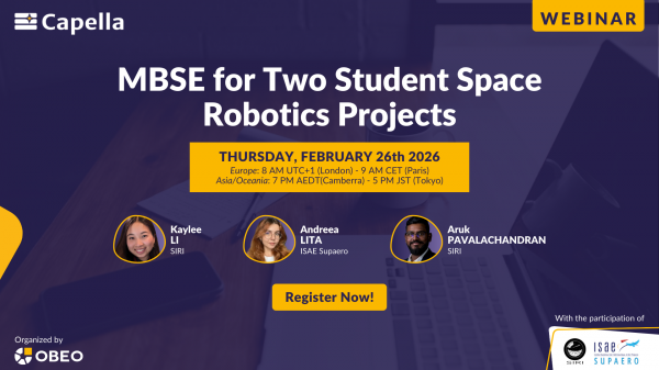 Ce webinaire présente le retour d’expérience de deux équipes étudiantes ayant appliqué l’approche MBSE avec Capella et la méthode Arcadia à des projets de robotique spatiale. Les intervenants expliquent comment ces outils leur ont permis de structurer des systèmes complexes, de mieux collaborer et de réduire les risques dans un contexte académique contraint. La session s’appuie sur deux cas concrets. Le projet Sydney Interplanetary Rover Initiative, dédié à un rover lunaire, et le projet d’ISAE Supaero, qui a mené en un an la conception d’un rover et d’un drone en passant d’outils bureautiques à Capella.